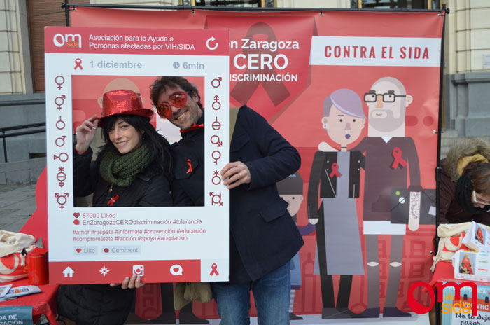 En Plaza de España los ciudadanos ya se acercaban a las mesas en busca de información, lacitos rojos, marcapáginas y calendarios que junto con las asociaciones Cruz Blanca Aragón, Somos Aragón, Aplec Inclusión+Igualdad y Médicos del Mundo Aragón ya habíamos instalado…